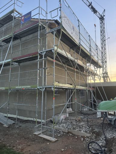 Für unsere Fassadenprojekte setzen wir ausschließlich eigenes Gerüst ein. Dadurch bleiben wir unabhängig, flexibel und vollständig selbstständig in der Ausführung. Die Gerüststellung erfolgt zu internen, kundenfreundlichen Konditionen, was die Gesamtkosten für den Auftraggeber spürbar reduziert. Unser Gerüst wird fachgerecht montiert und an die Anforderungen des jeweiligen Objekts angepasst, sodass ein sicherer und effizienter Arbeitsablauf gewährleistet ist.